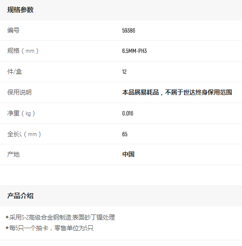 產(chǎn)品名字:世達(dá)6.3MM系列65MM長(zhǎng)雙頭旋具頭6.5mm-PH3