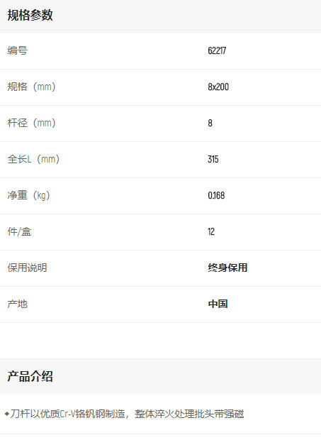 產(chǎn)品名字:世達(dá)A系列一字批8x200mm